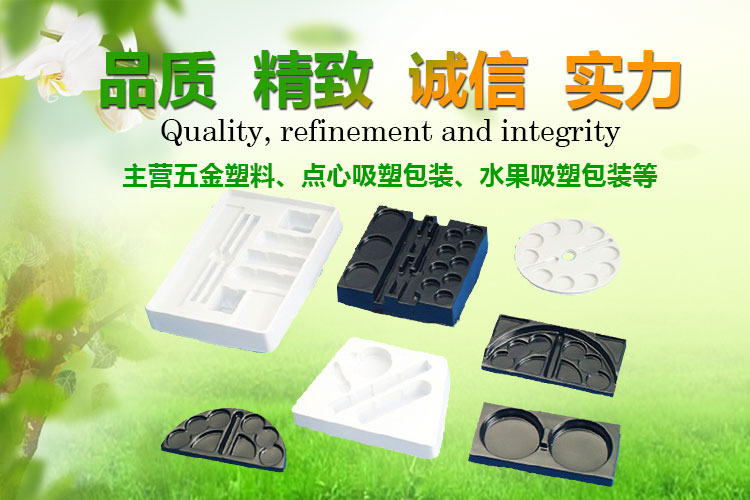 主營產品:電子五金吸塑、點心吸塑包裝、水果吸塑包裝、醫藥吸塑包裝、化妝品植絨吸塑